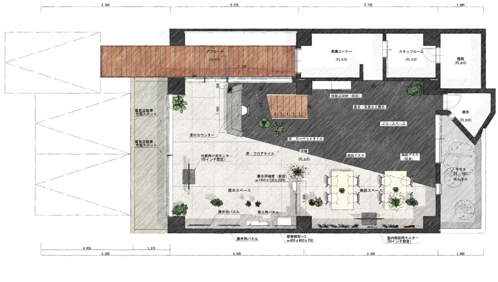 パース作成・平面図、立面図のカラー図面作成・ロゴデザイン・フォトグラフィーなどプレゼンマテリアルを作成します。